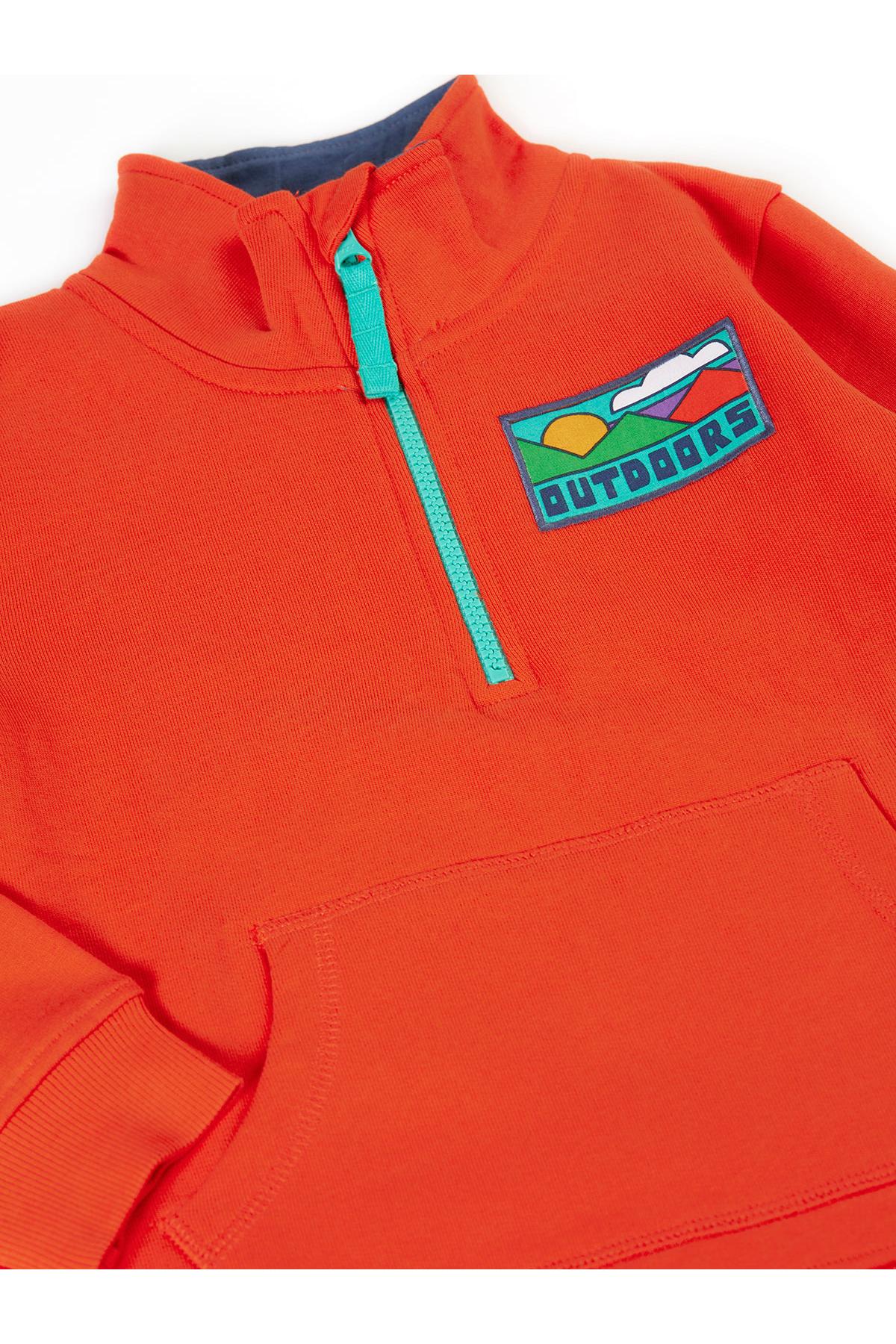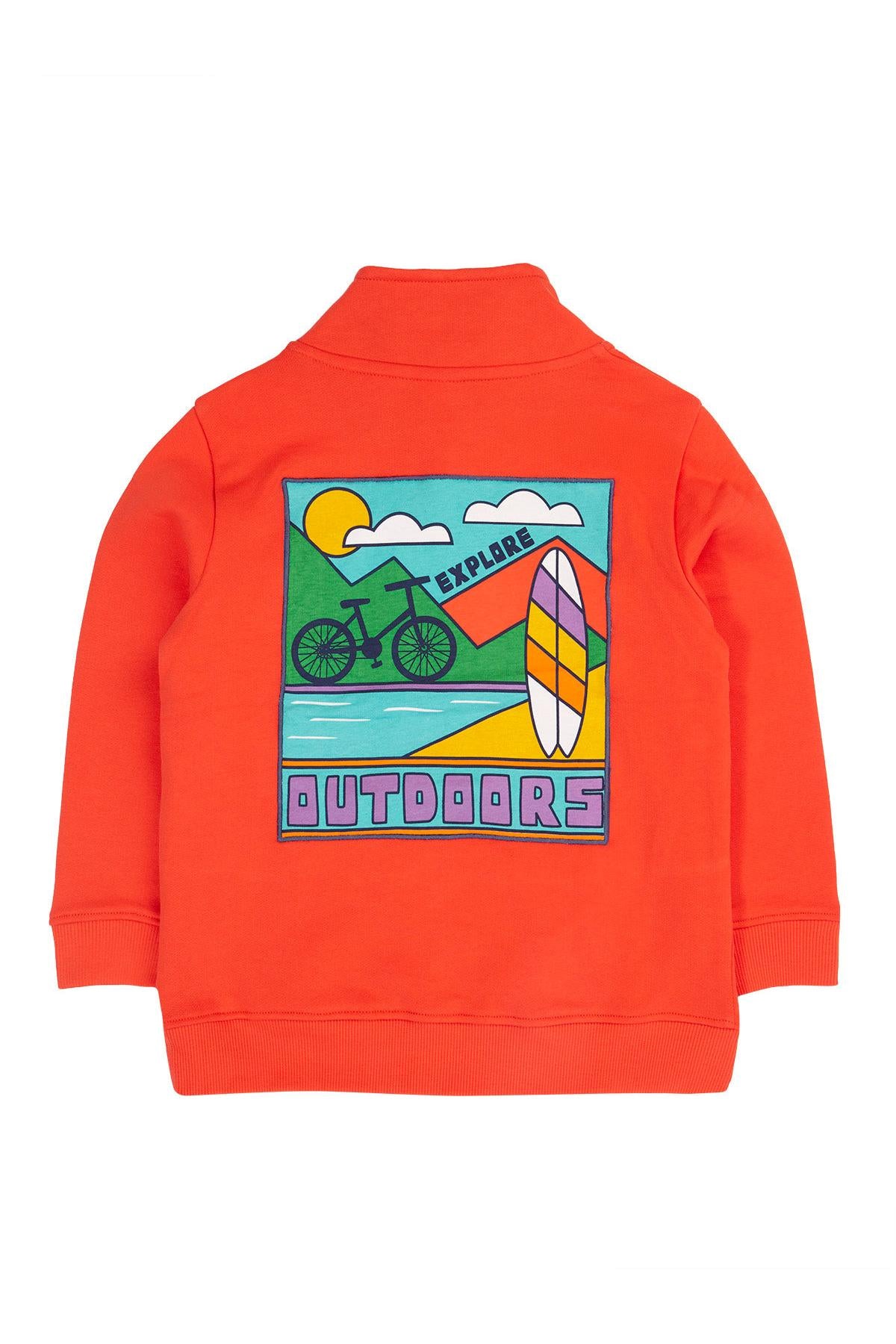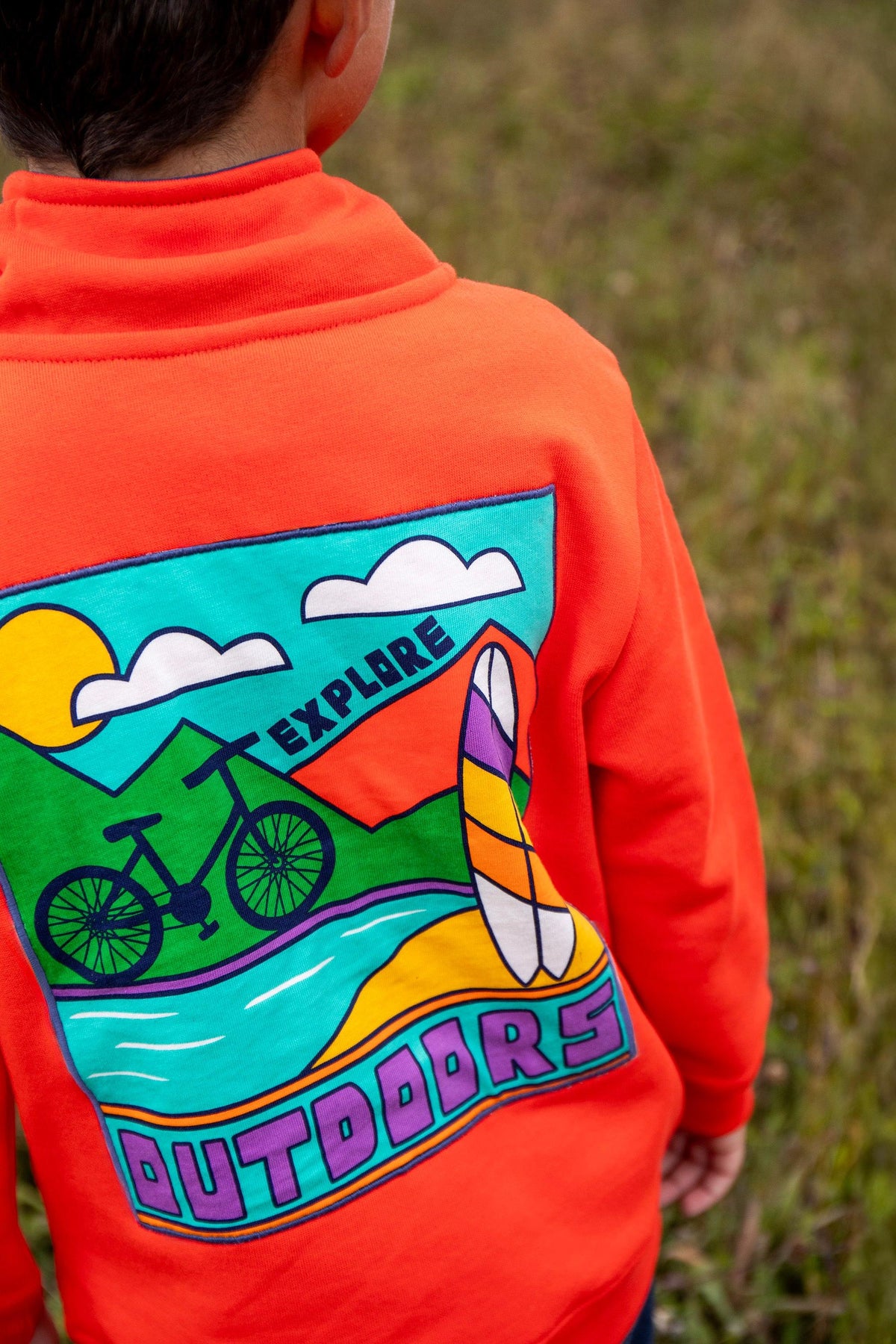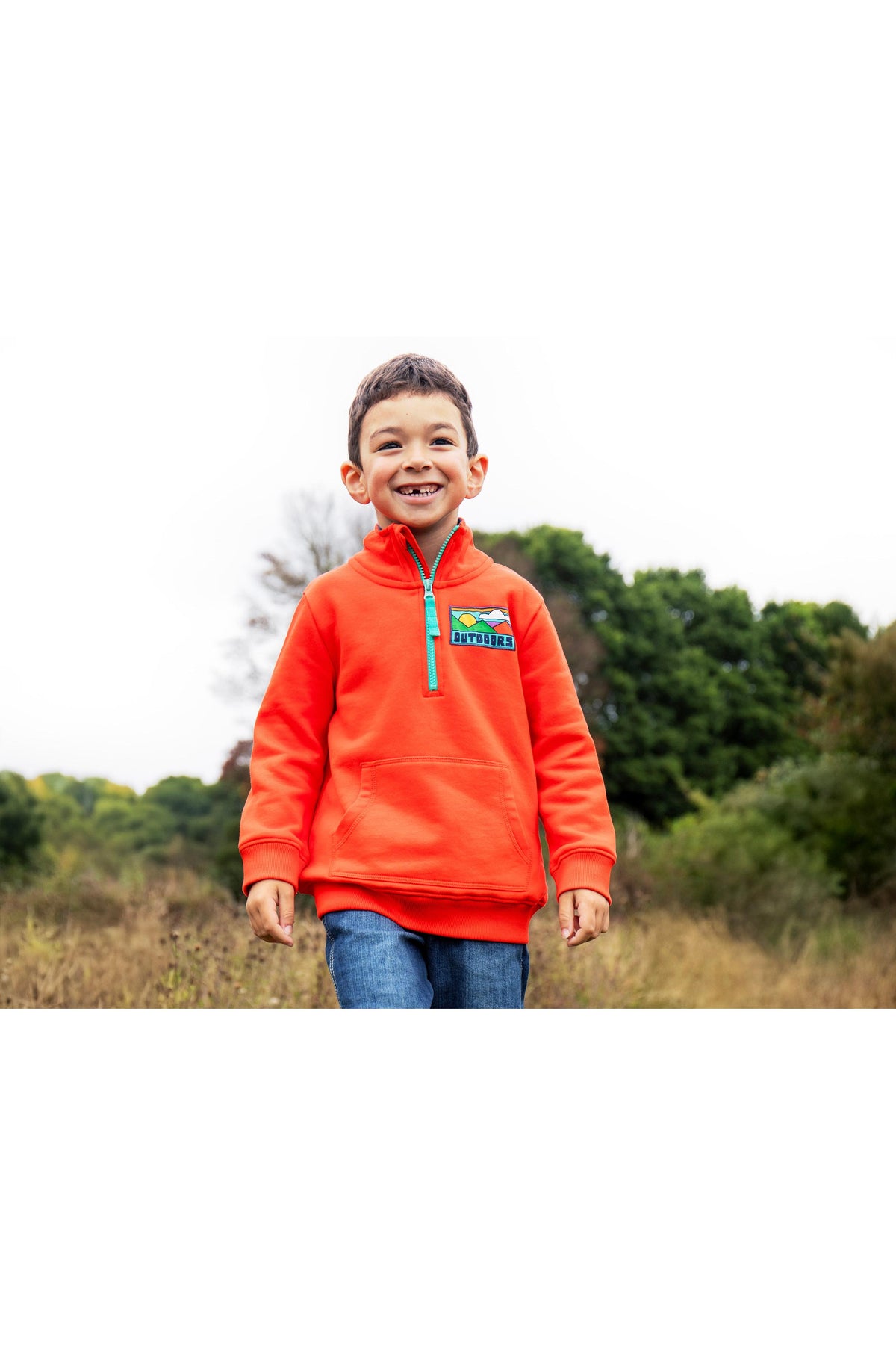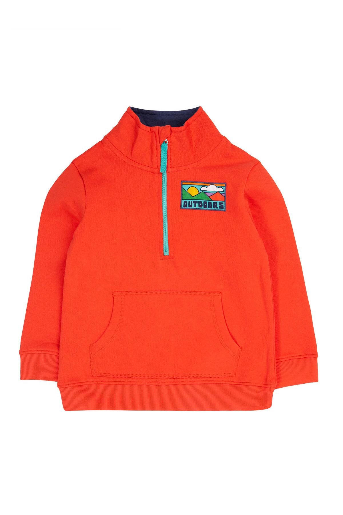 With a fun adventure patch on the chest and a bold printed emblem on the back, the Frugi Handy Half Zip Sweatshirt is a cosy go-to for those cooler spring days. Made from soft, warm GOTS-certified organic cotton, it features a handy half zip with chin guard, a large front pocket, and stretchy ribbed cuffs and hem to help lock in warmth.