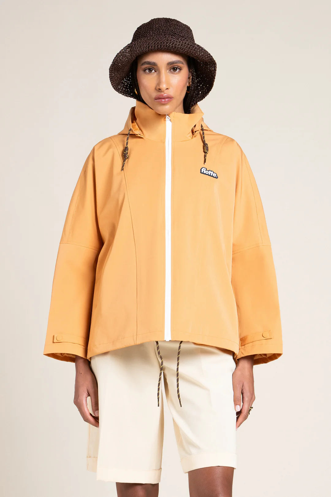 Discover Lourmel - a cropped, oversized cape designed to bring a bit of shape and energy to your look. It’s a modern take on one of Flottes signature styles, combining a clean, minimal feel with practical, technical details.