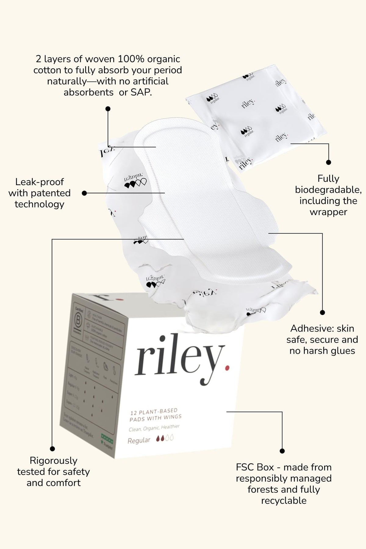 Riley Regular Pads - Box of 12