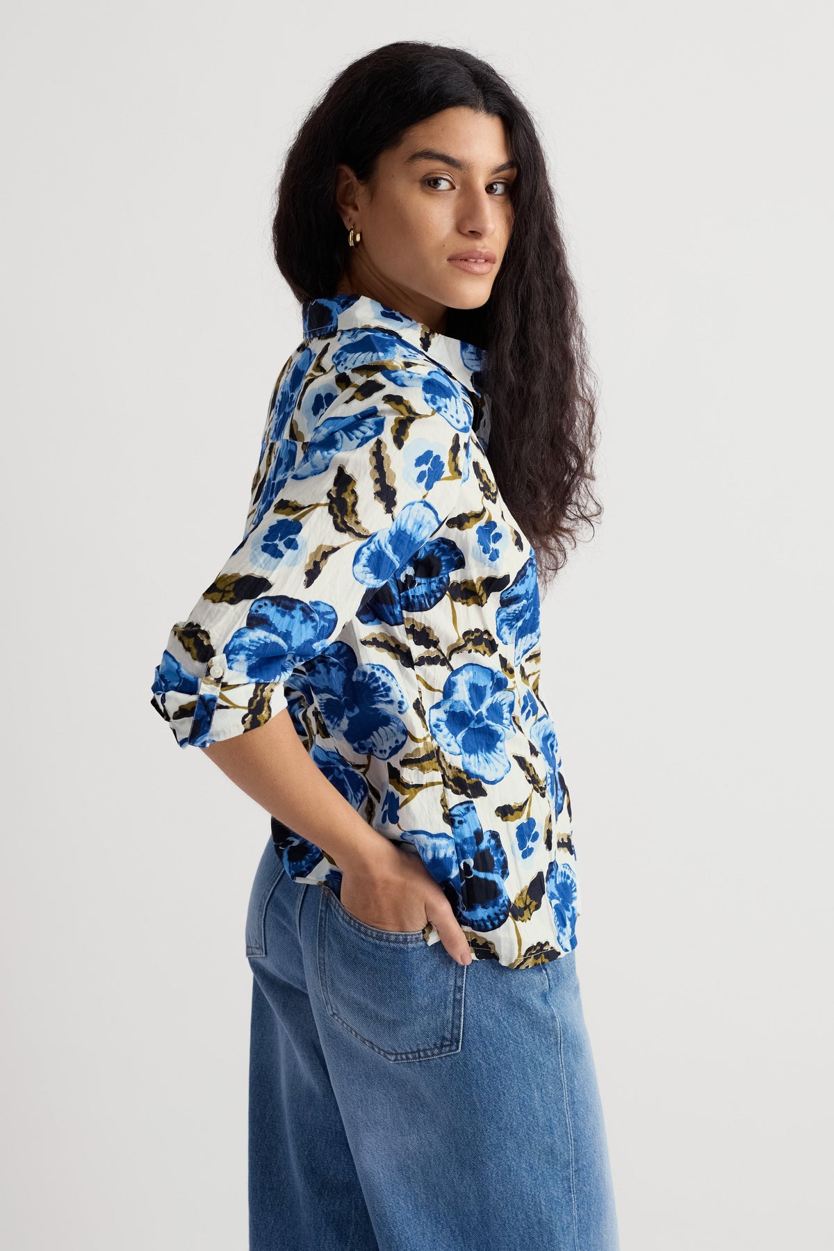 This shirt is a year-round favourite. Made from the softest organic cotton with a casual crinkled appearance, the beauty of this shirt is that it doesn’t need ironing all you have to do is just wash and twist to keep the crinkle. This semi-fitted style is easy-to-style and comfortable, with long sleeves and button loops so you can roll up the cuffs to change your look.