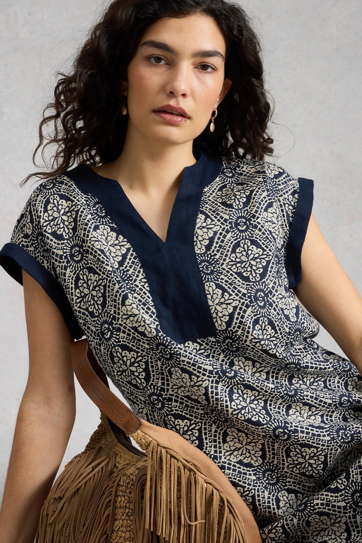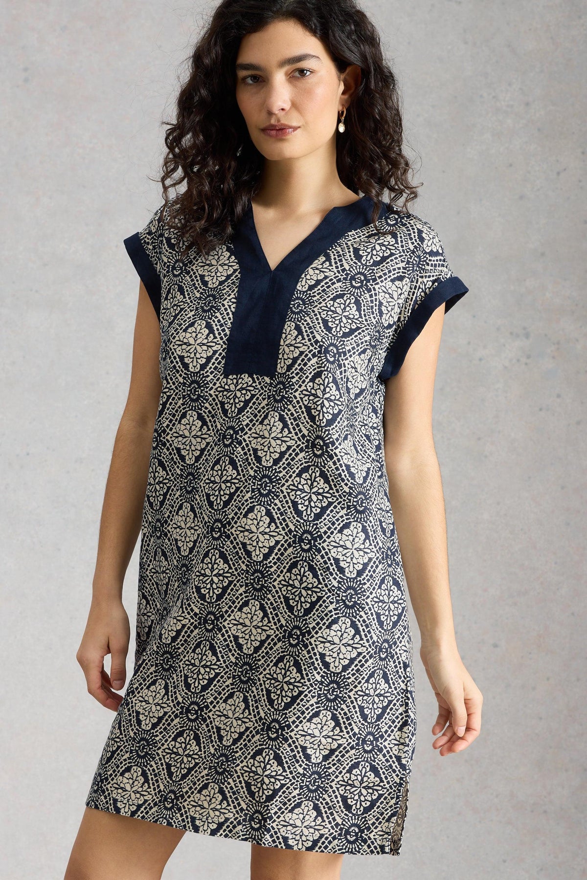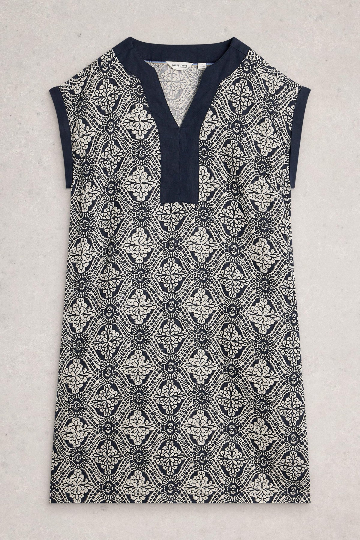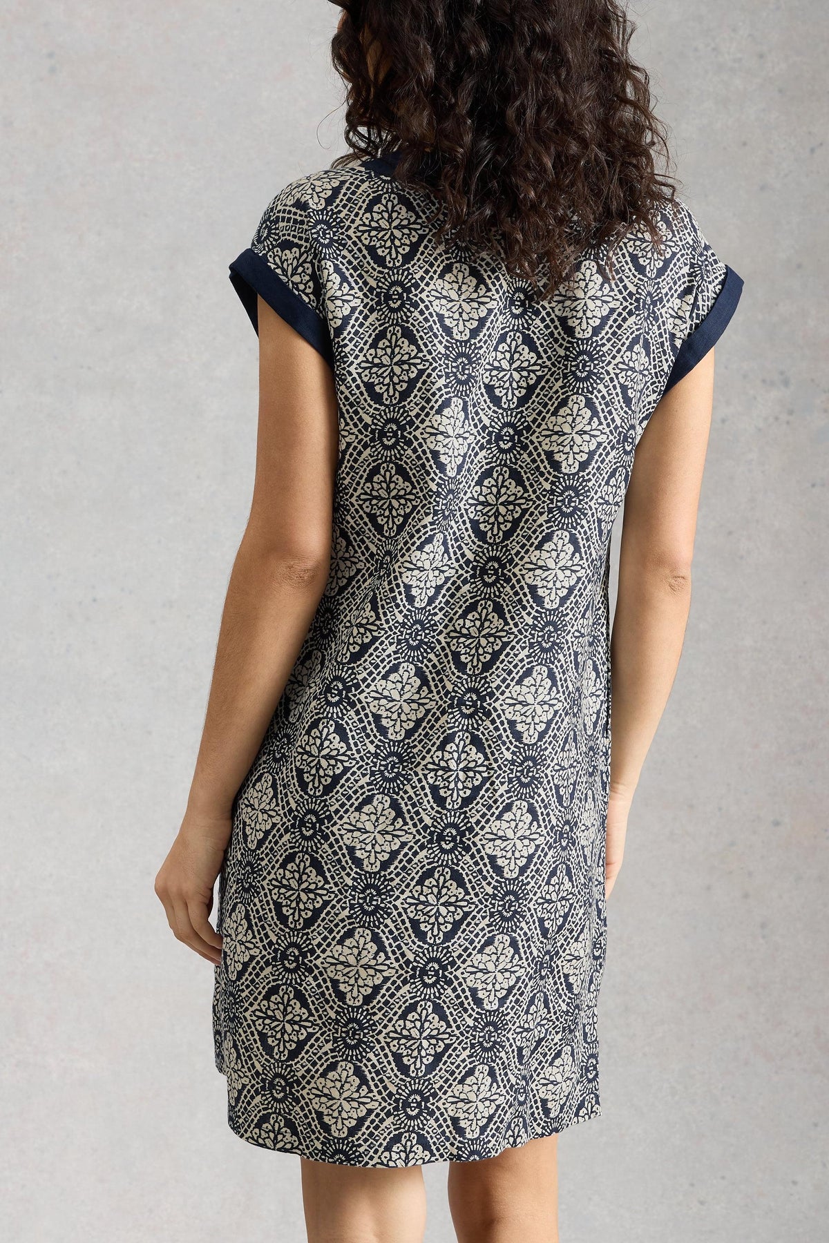 White Stuff Jilly Navy Multi Linen Dress