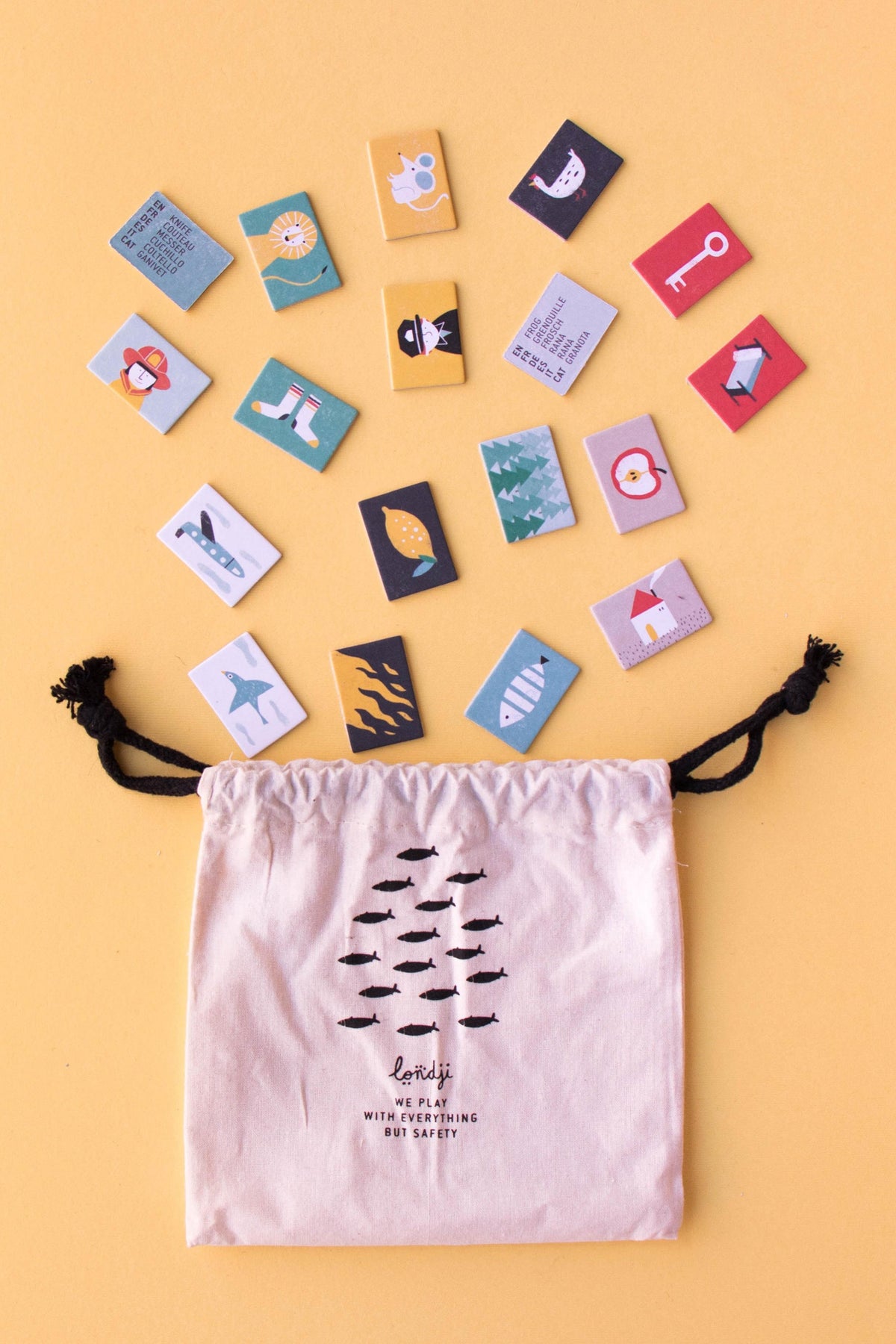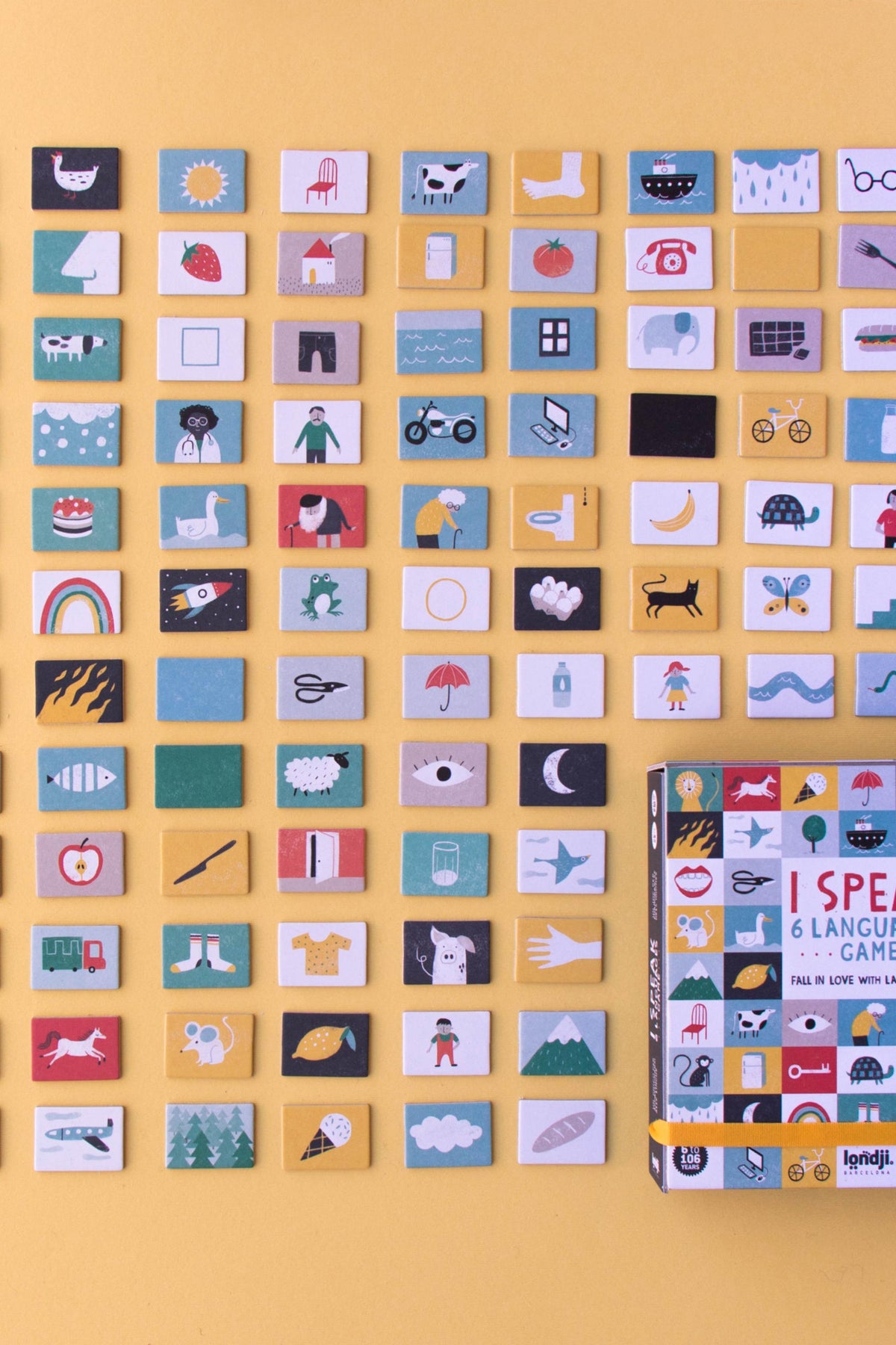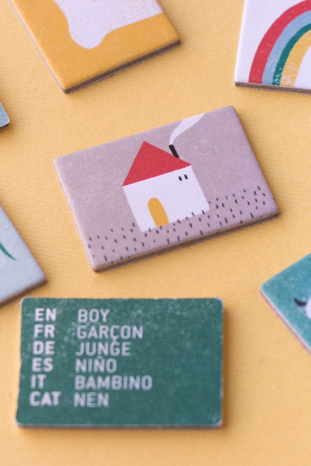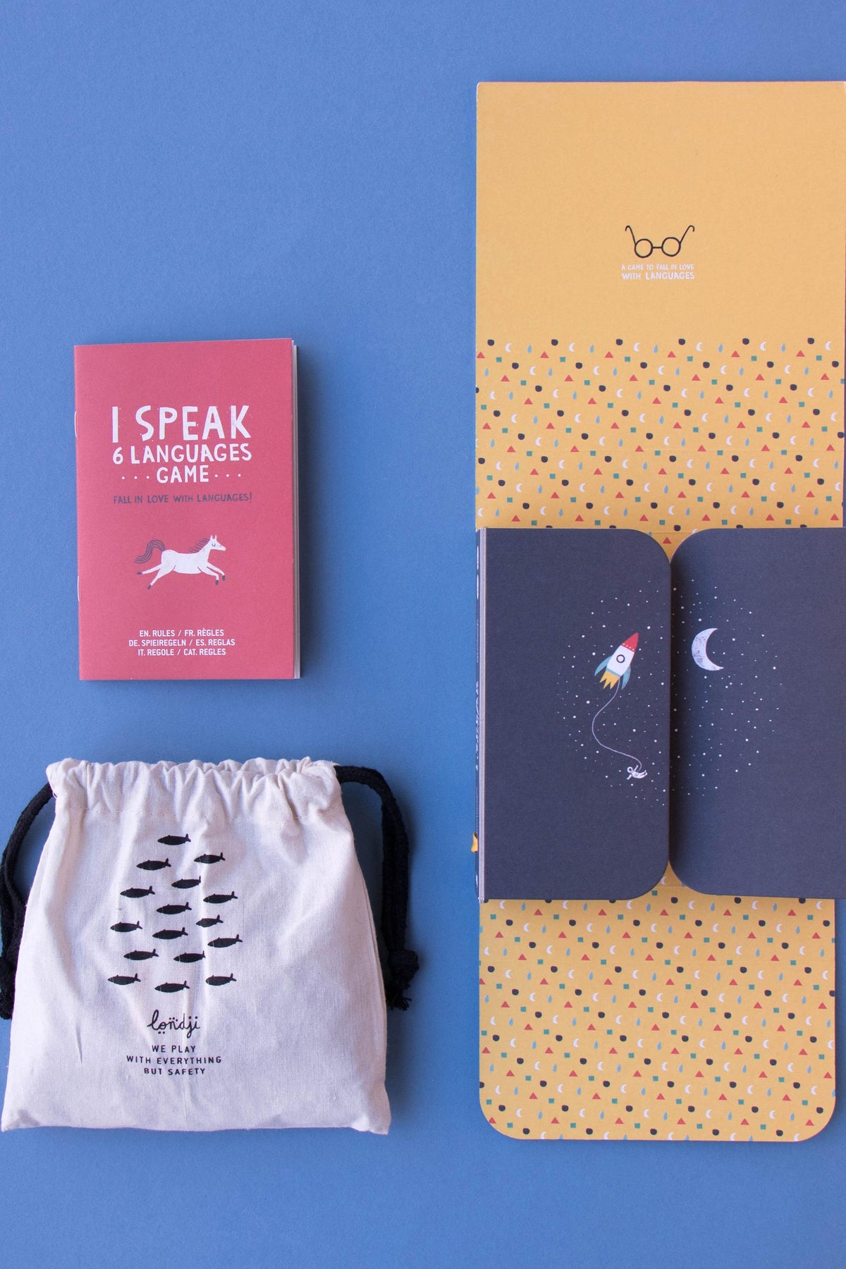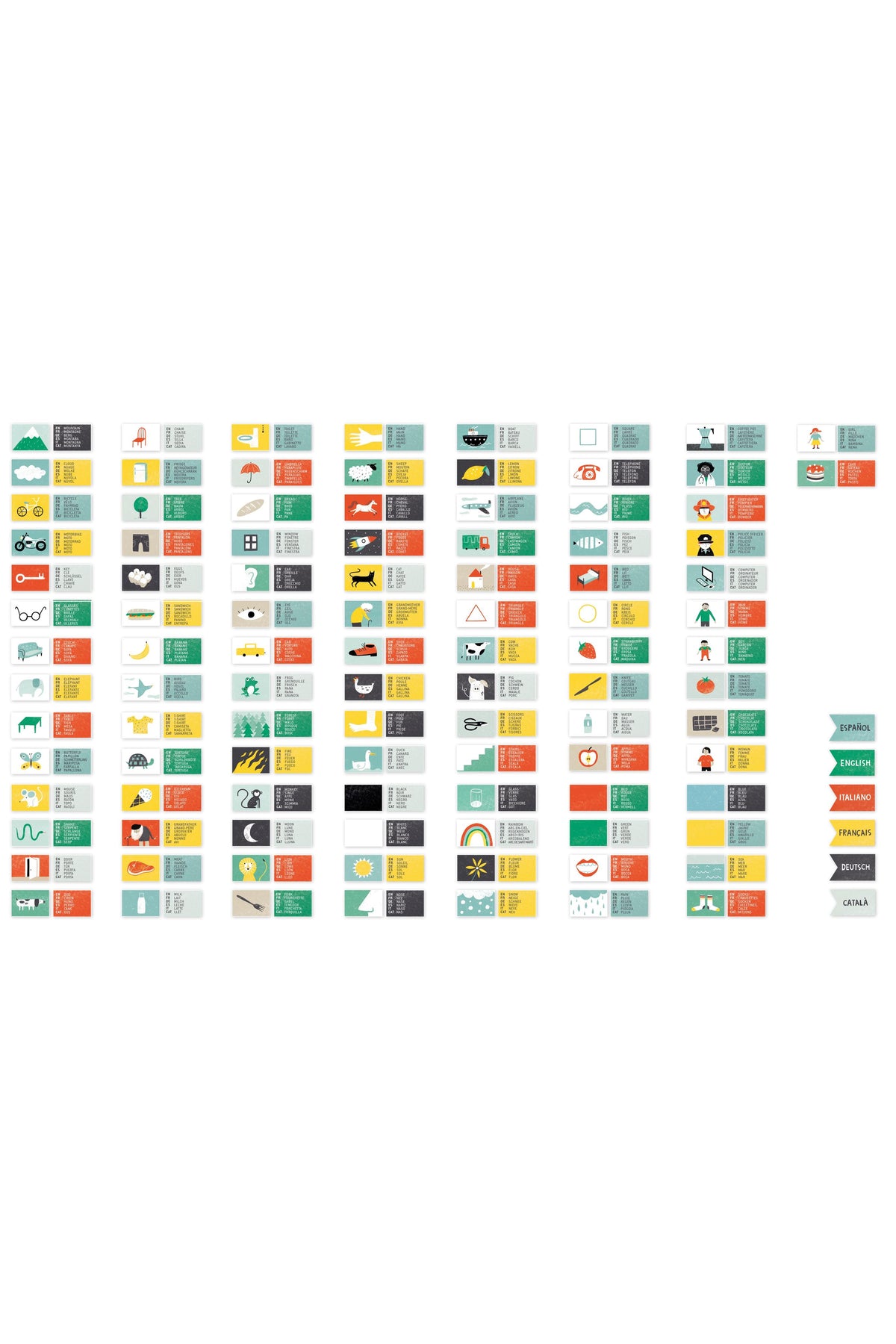 A fun and educational family game that helps players learn vocabulary in multiple languages using illustrated cards, the perfect way to explore new languages.