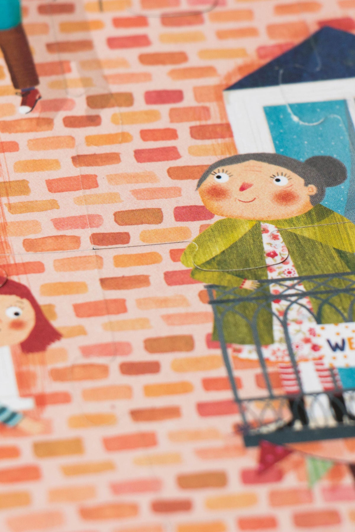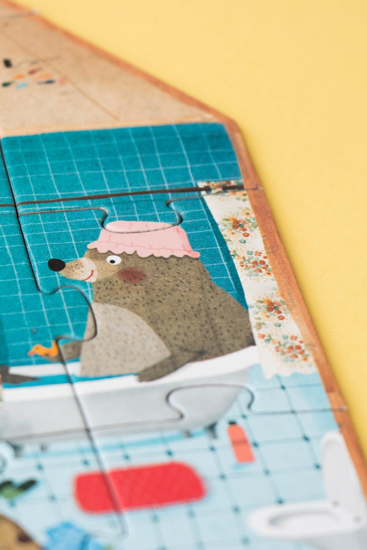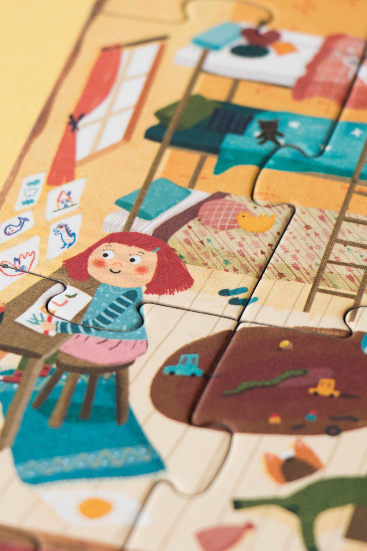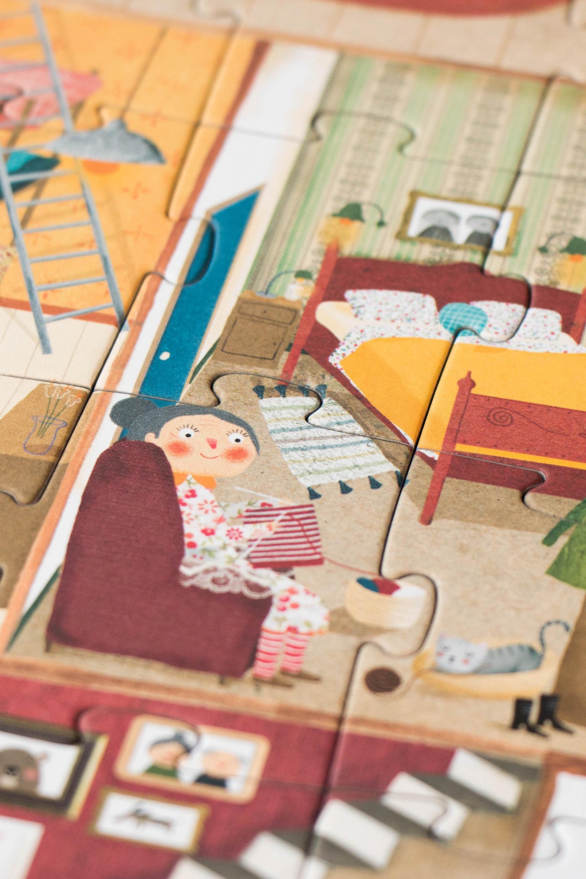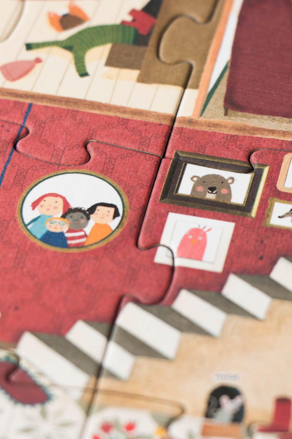 On one side of the puzzle, you’ll find the outside of the house, and on the other, the bustling interior full of life and little adventures.