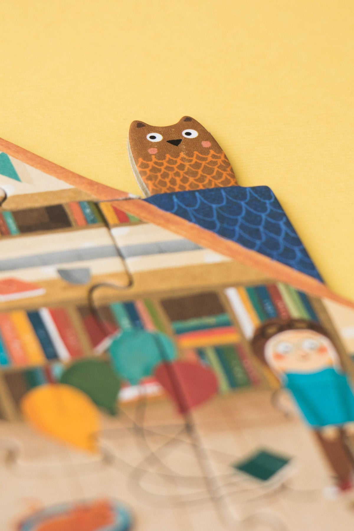 This 36-piece reversible puzzle lets children explore two charming scenes while encouraging observation, storytelling, and play. A beautifully made toy, crafted in Europe.