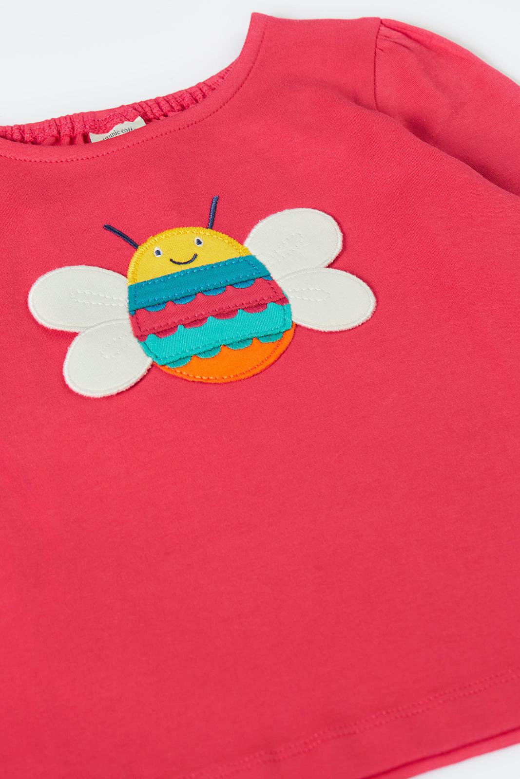 Frugi Caris Applique Top in Rhubarb/Bee
