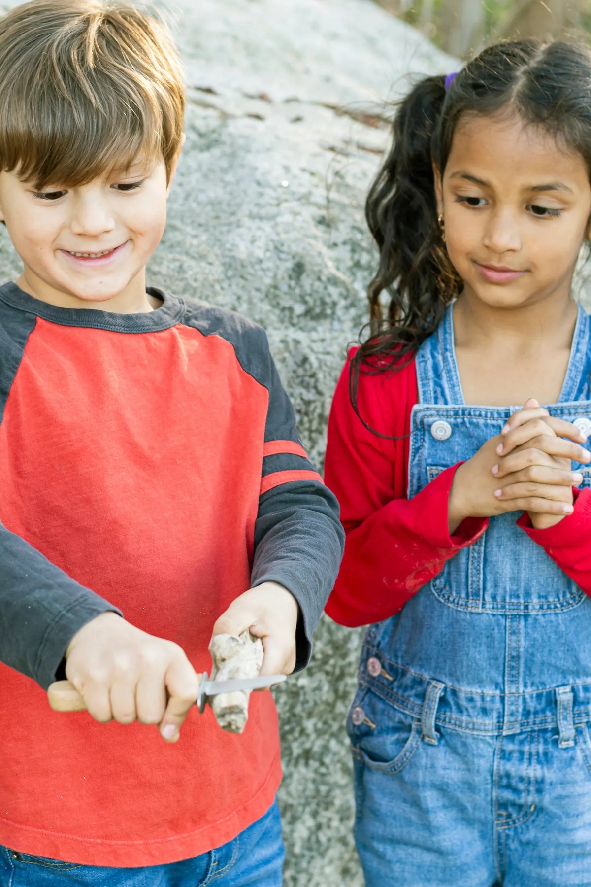 Child-safe wood carving knife designed to inspire young makers to connect with nature and bring their ideas to life! Comes with a faux leather protective sheath and a booklet filled with tips and sample designs to kickstart creativity.