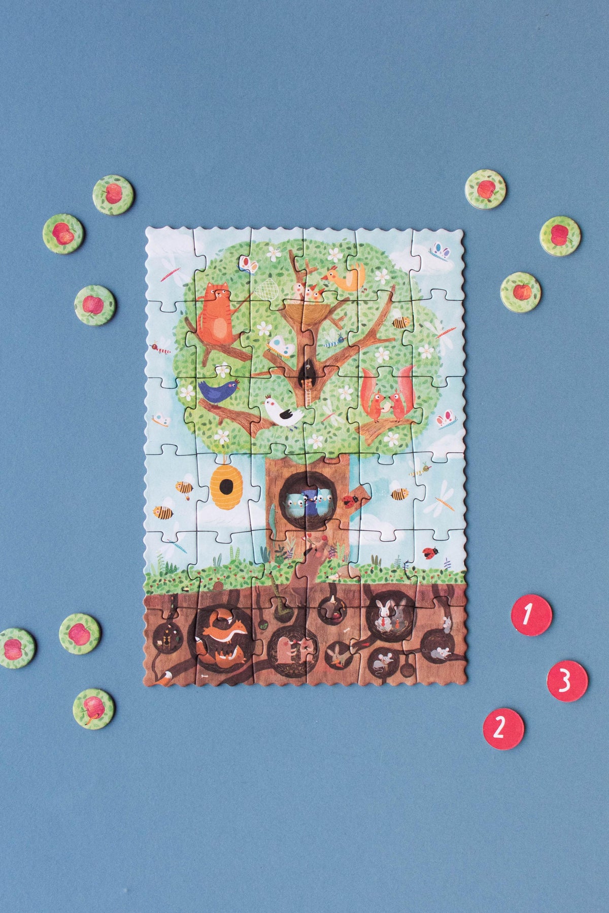 Once the puzzle is complete, the fun continues, spot all the blossoms that will soon turn into apples and practice counting along the way.