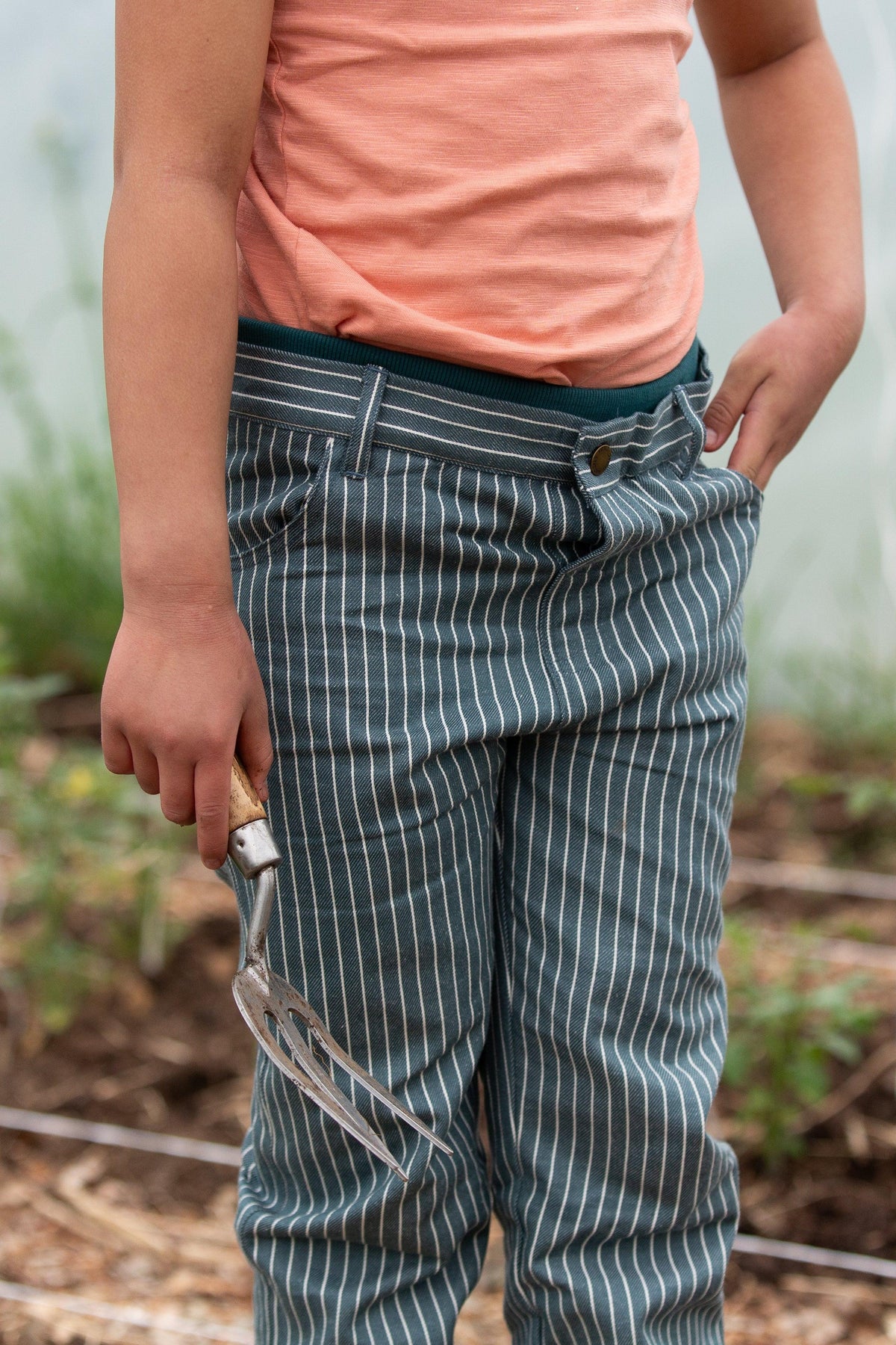 Little Green Radicals Navy Stripe Rib Waistband Pocket Trousers