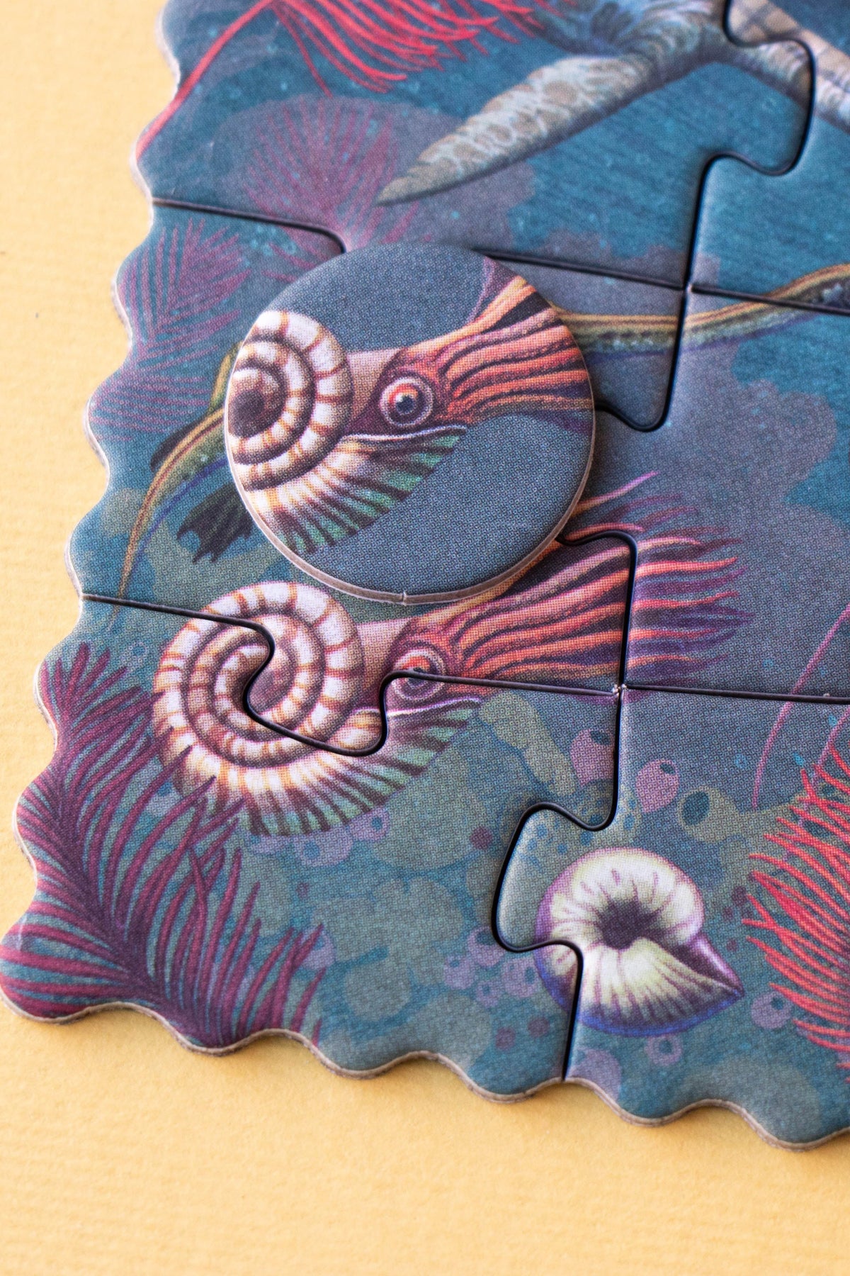 A small 50-piece puzzle that includes 12 pieces to learn about dinosaurs. An educational, sustainable toy made in Europe, locally crafted near Barcelona.