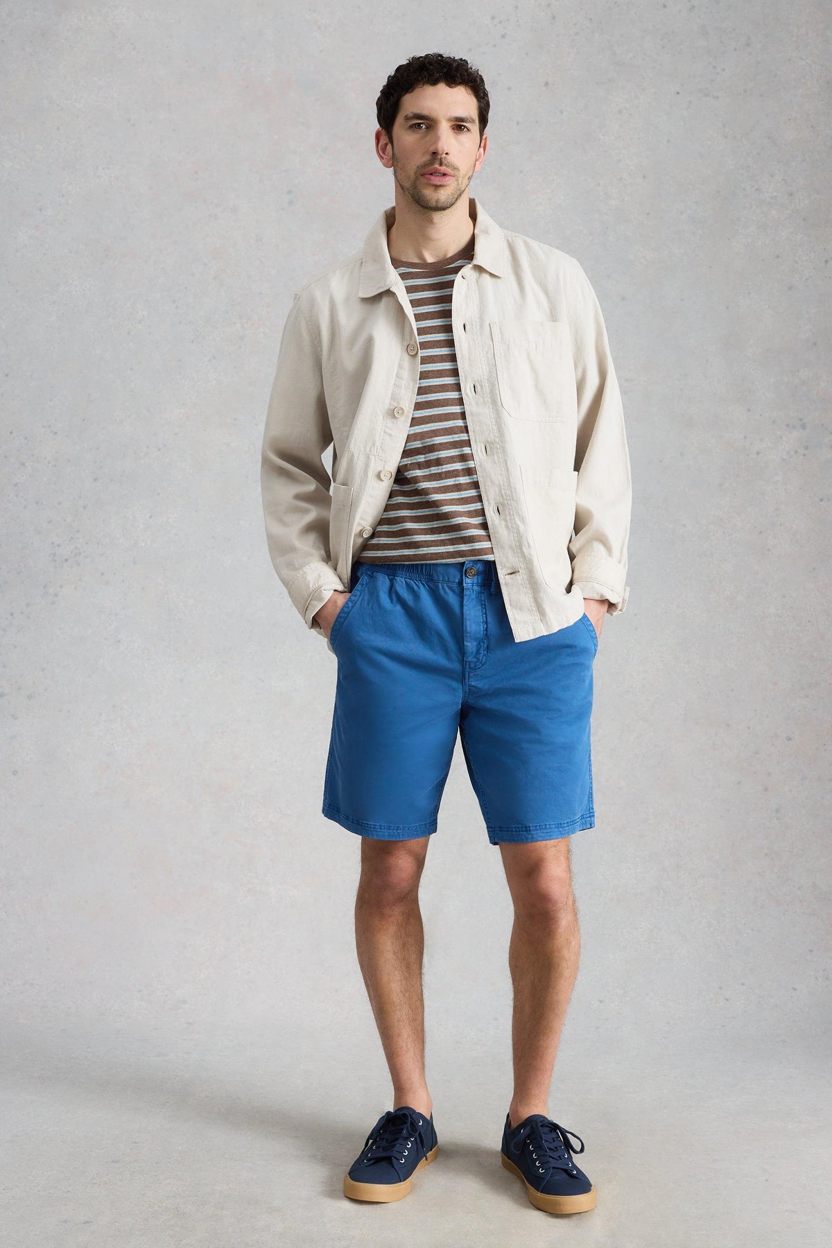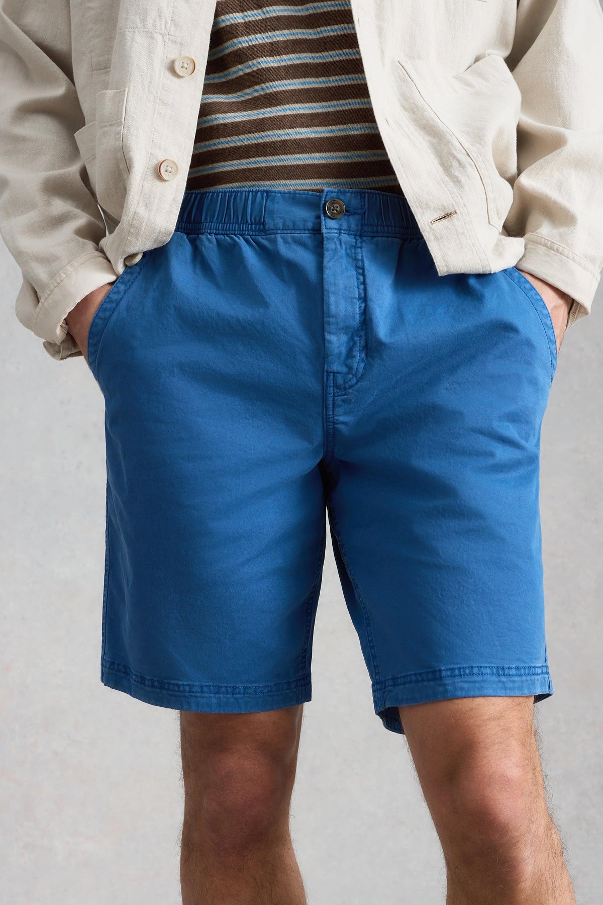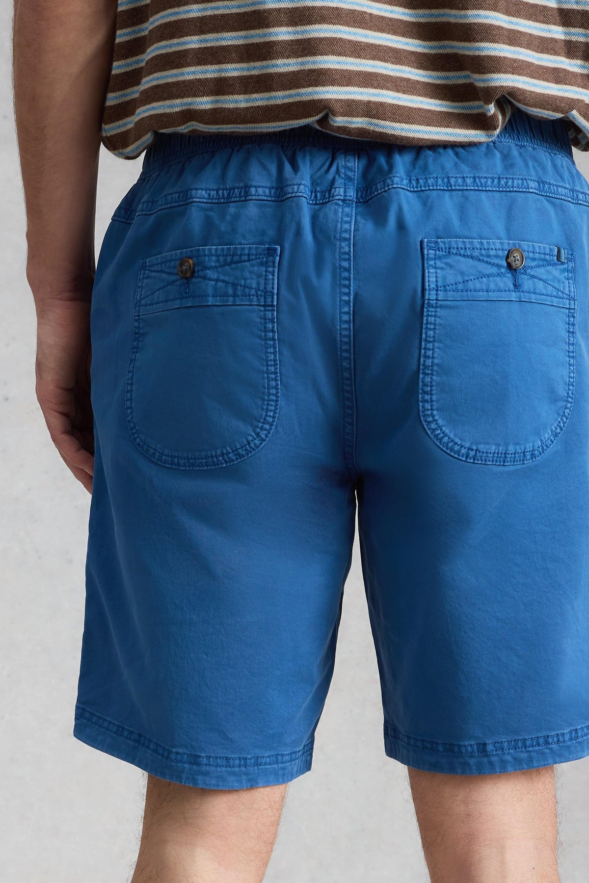 A classic pair of men’s blue shorts made from soft, organic cotton, perfect for summer barbeques and sunny days. With a comfy elasticated waistband, they’re easy to wear and made for all-day comfort.