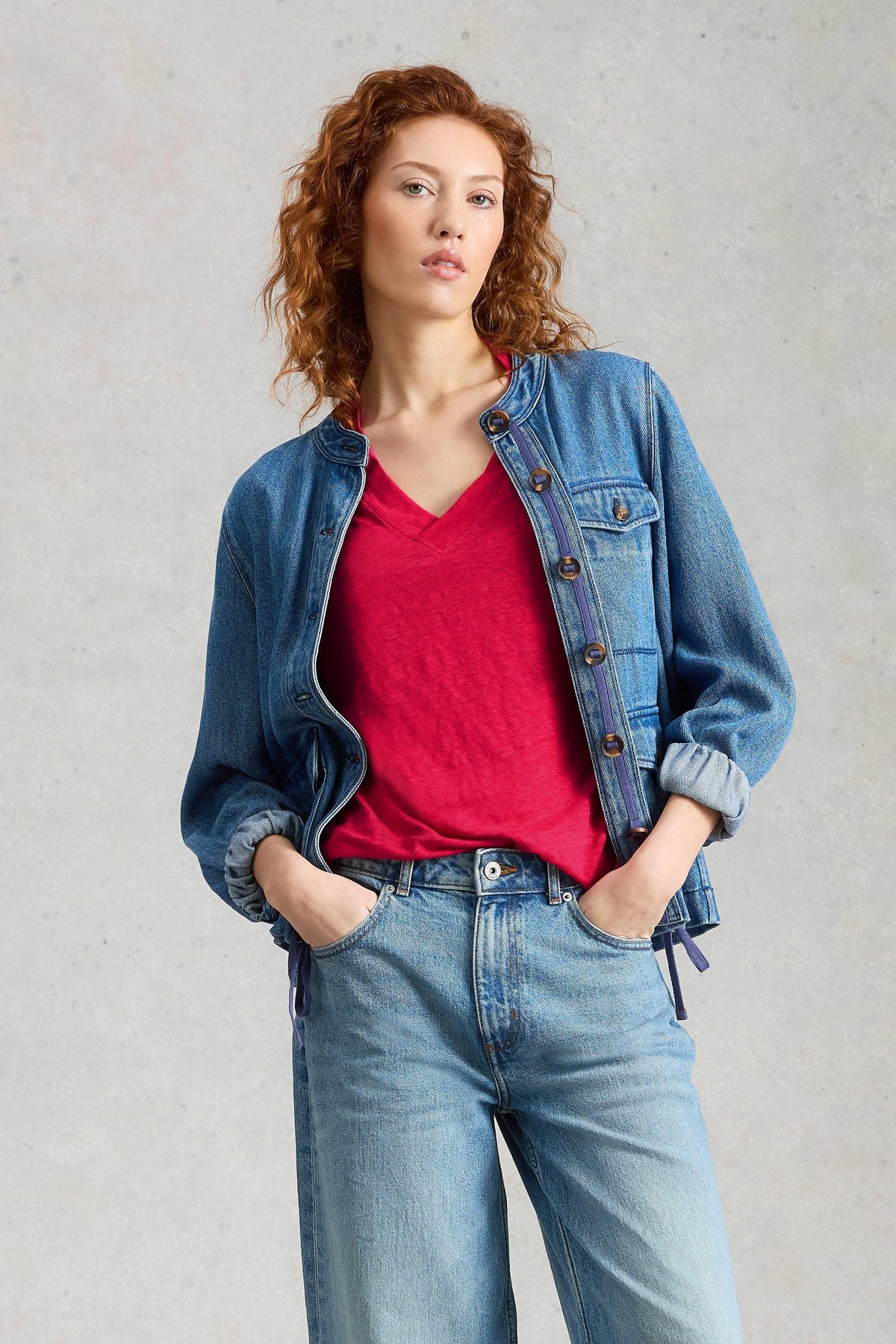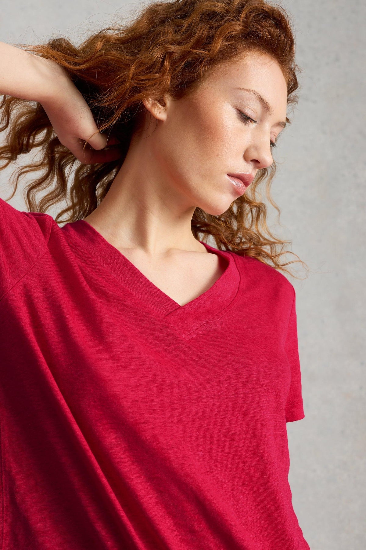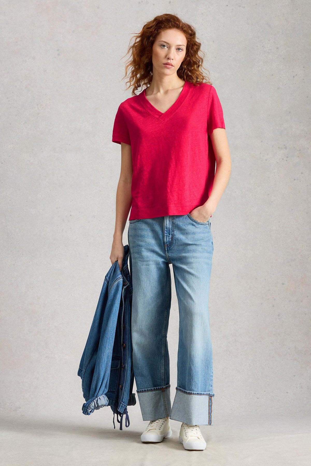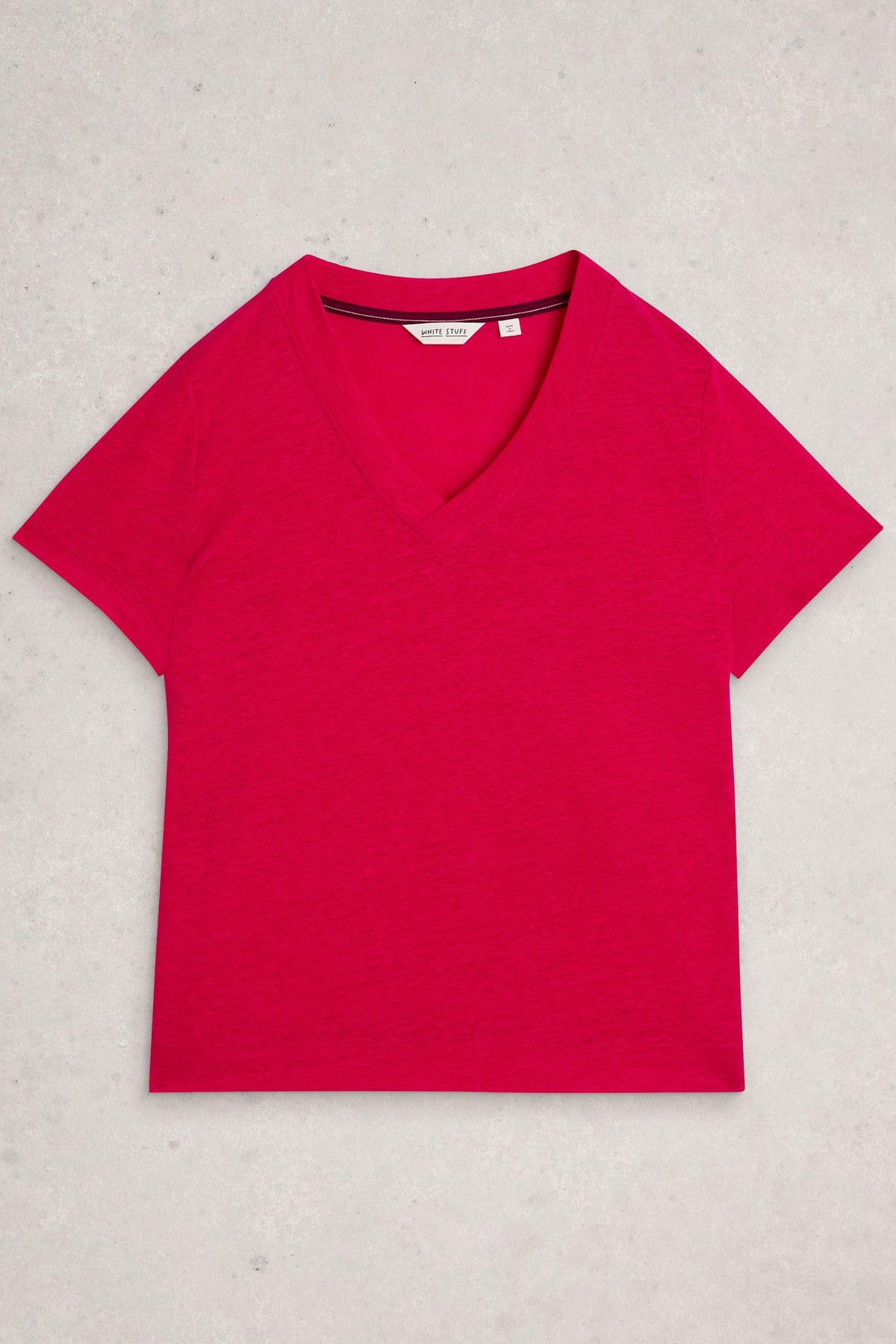 White Stuff Susie V Neck Dark Pink Linen Tee