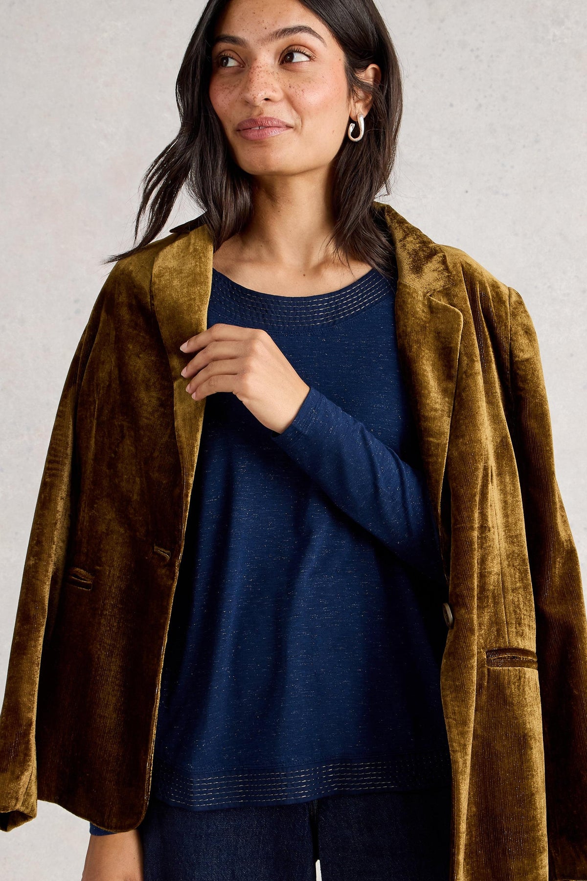 White Stuff Long Sleeve Weaver Sparkle Tee