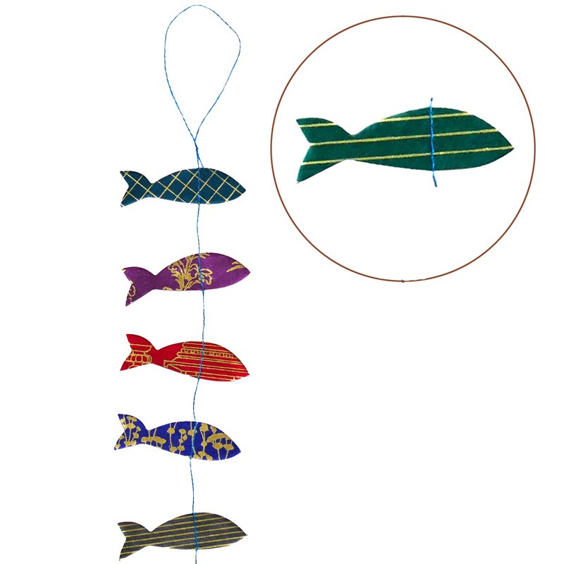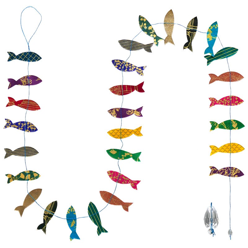 Tantra Sardine Garland - -1.50m approx. - Lamali Lokta paper forms printed in gold; stitched as a garland - Handmade in Nepal.