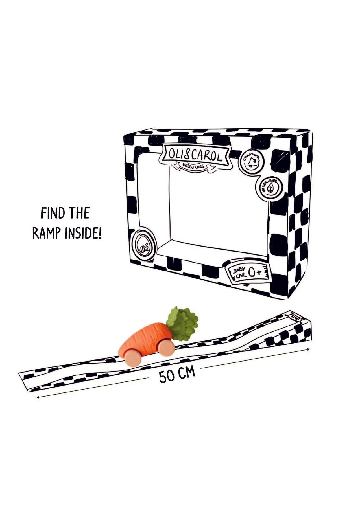 Meet Cathy, the carrot-inspired sustainable baby car toy! Handcrafted from natural rubber and FSC-certified wood, Cathy is designed for babies from 0+ years up to 4 years old.