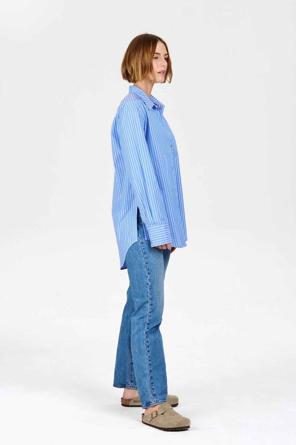 An easy, everyday shirt made from 100% organic cotton. Lightweight, breathable and soft to wear, with a classic blue stripe that goes with just about everything.
