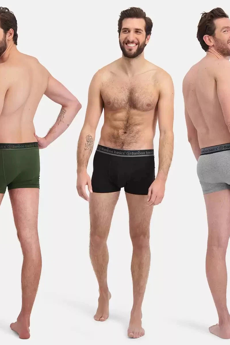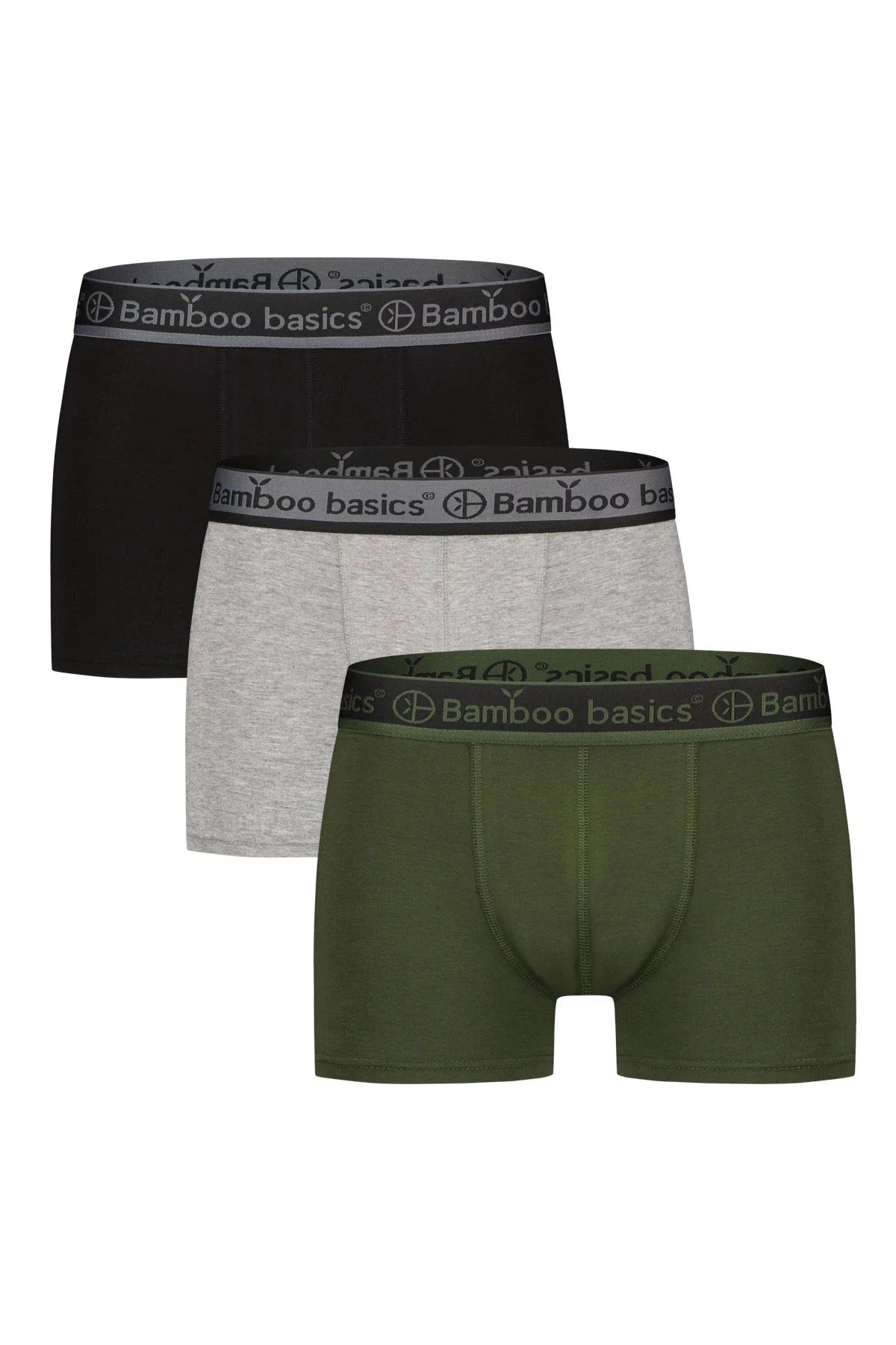 Bamboo Basics Liam Mens BB Black, Army, Grey Knitted Trunk Boxershorts 3-pack