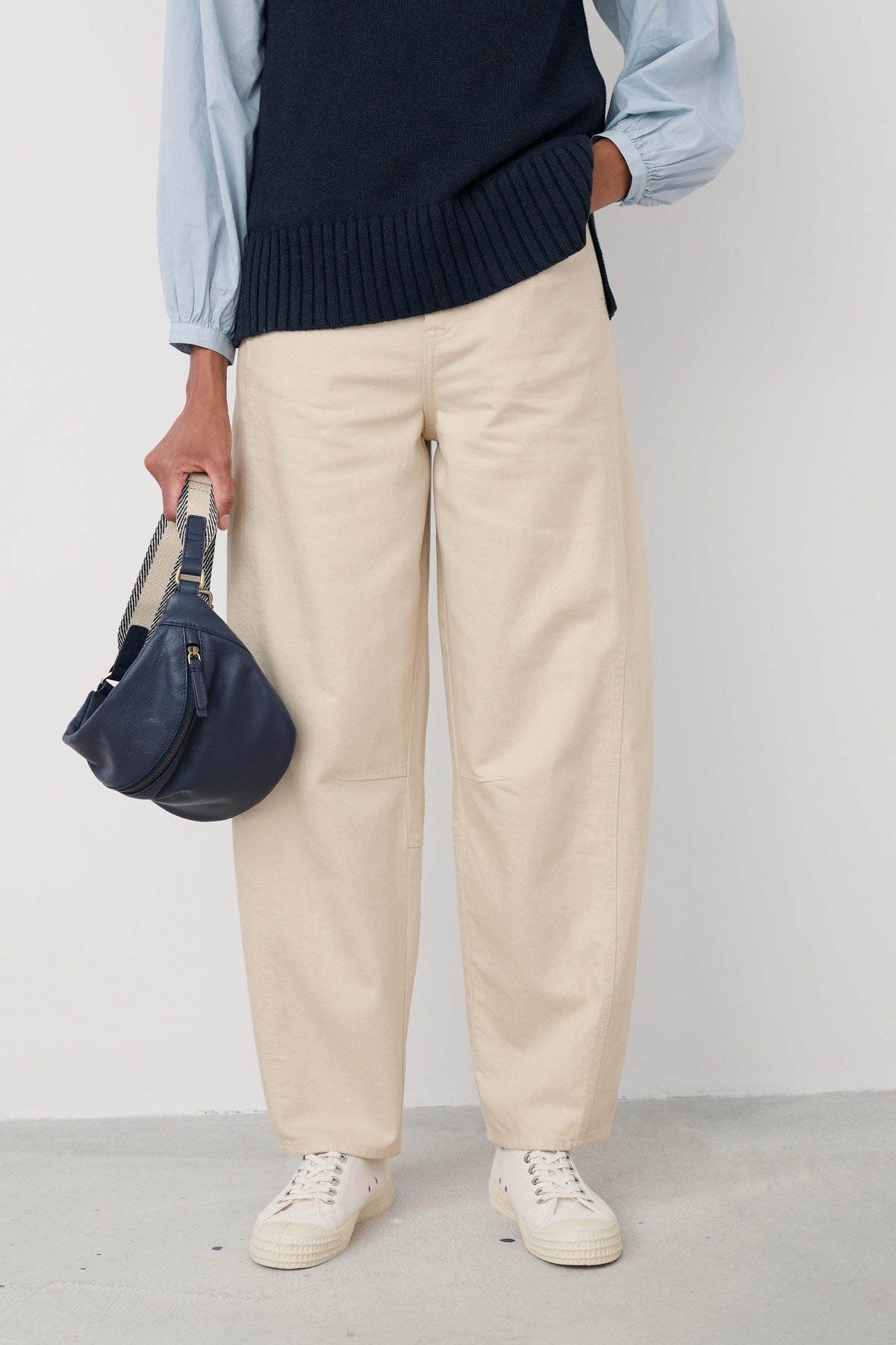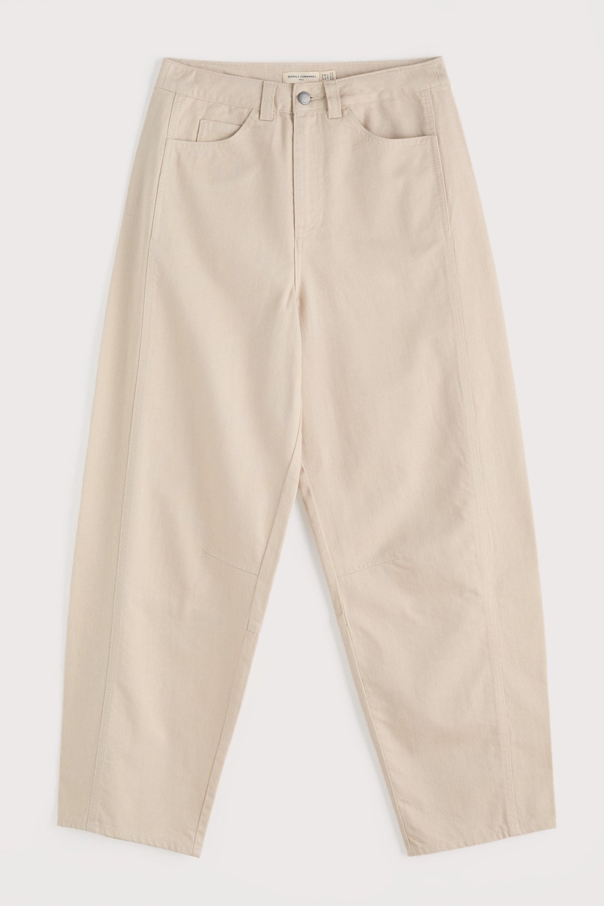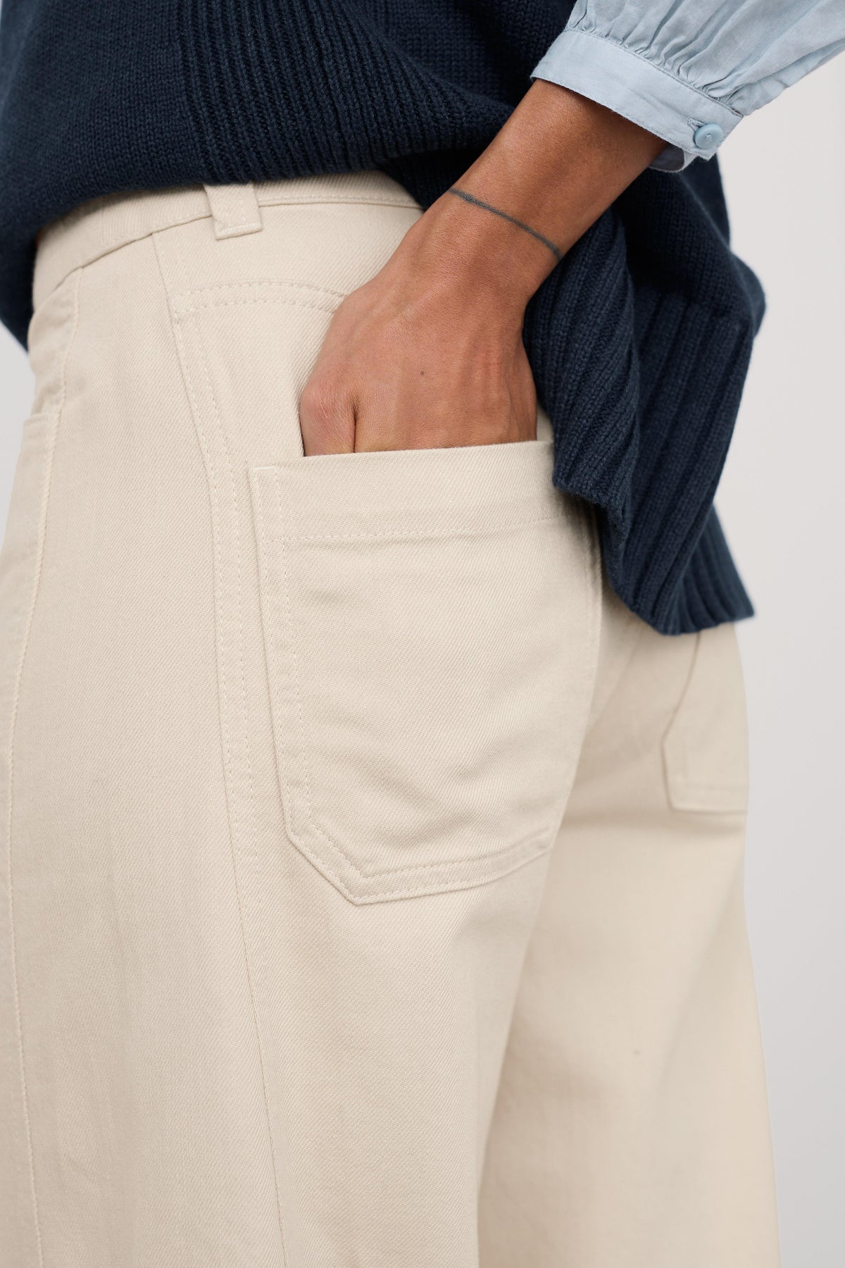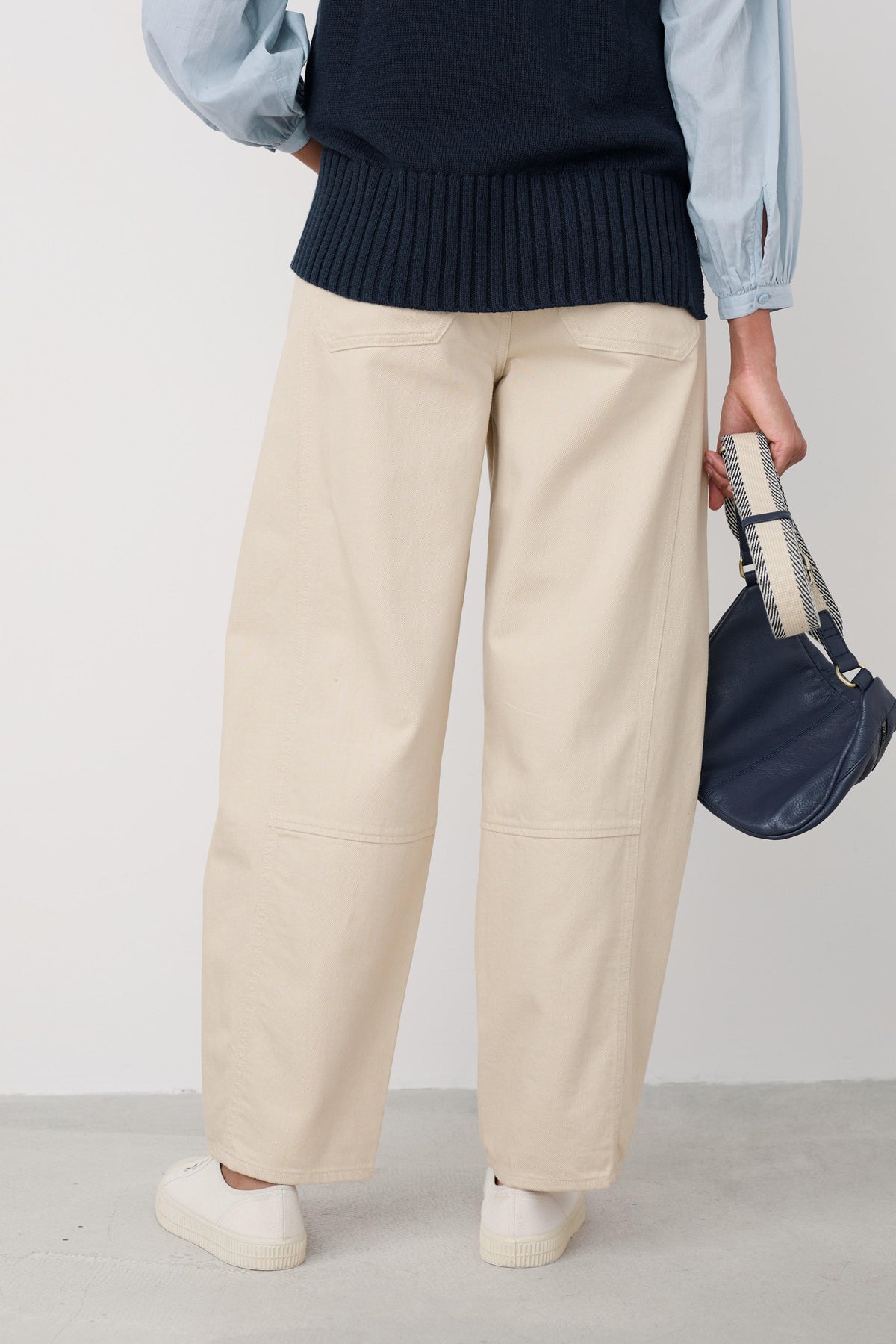 Modern, polished and easy to wear, the Seasalt Gwenver Jeans are designed with a high-rise waist and a soft barrel leg shape. The silhouette curves gently through the thigh before tapering at the ankle, creating a structured yet flattering fit. Off-centre seams elongate the leg, while angled back pockets are thoughtfully placed to shape and lift. Made from premium non-stretch organic cotton denim, washed for a softer feel.